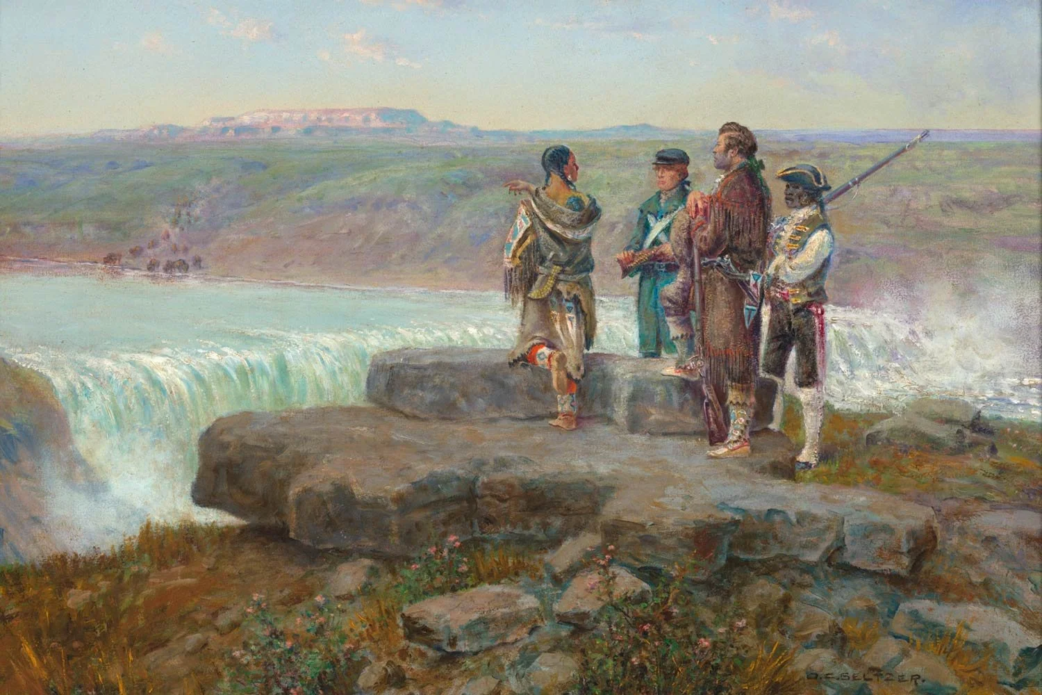 “Lewis and Clark with Sacajawea at the Great Falls of the Missouri 1804.” Gilcrease Museum.