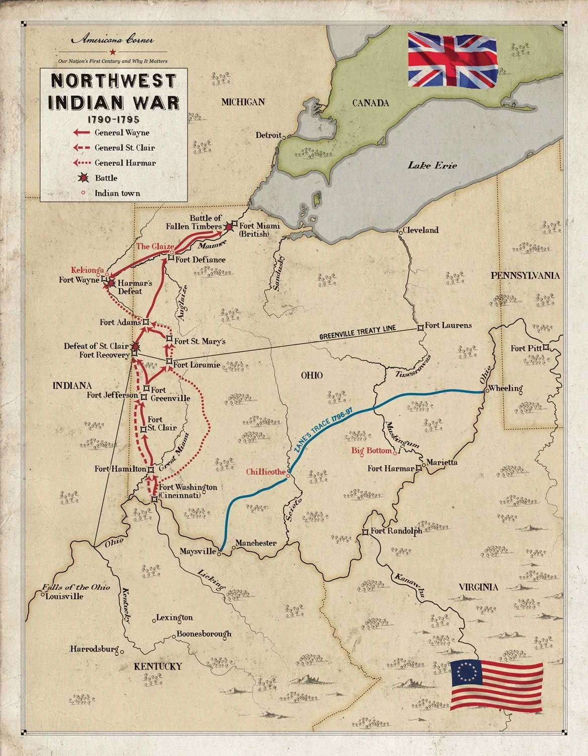 The Northwest Ordinance of 1787 created the Northwest Territory and a template for how the vast area, also known as the Ohio Country, was to be settled by the United States. But determining how the land was to be developed was the easy part. The more challenging aspect for the federal government was how to make the territory safe for the new settlers given the many Indian tribes who claimed this area as their own and had no desire to move.